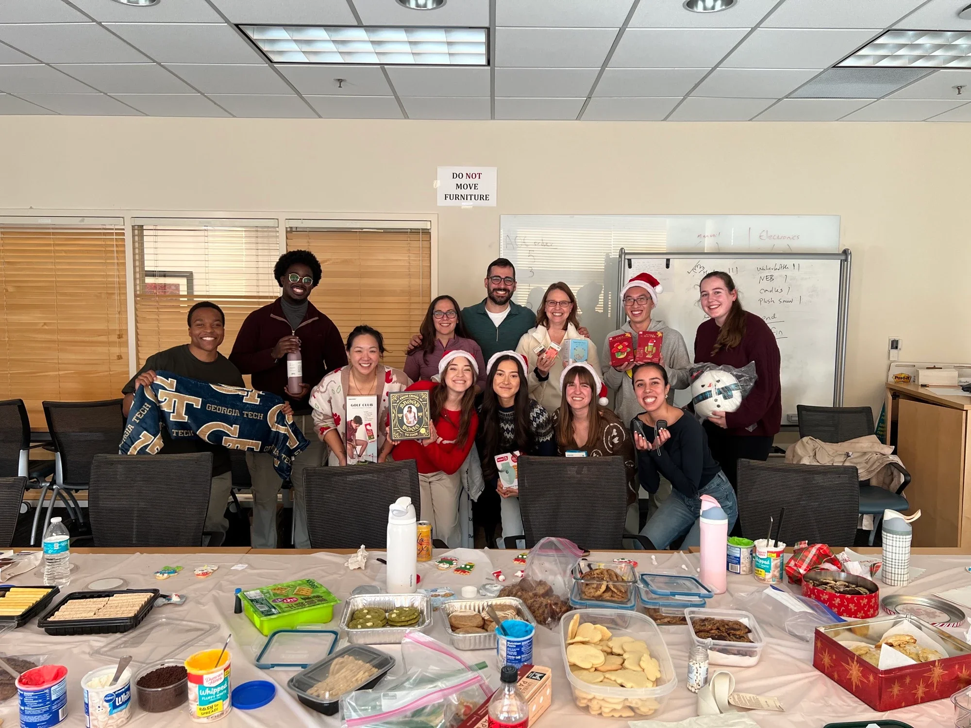 Cookie decorating and white elephant with Mejias and Deans Labs
